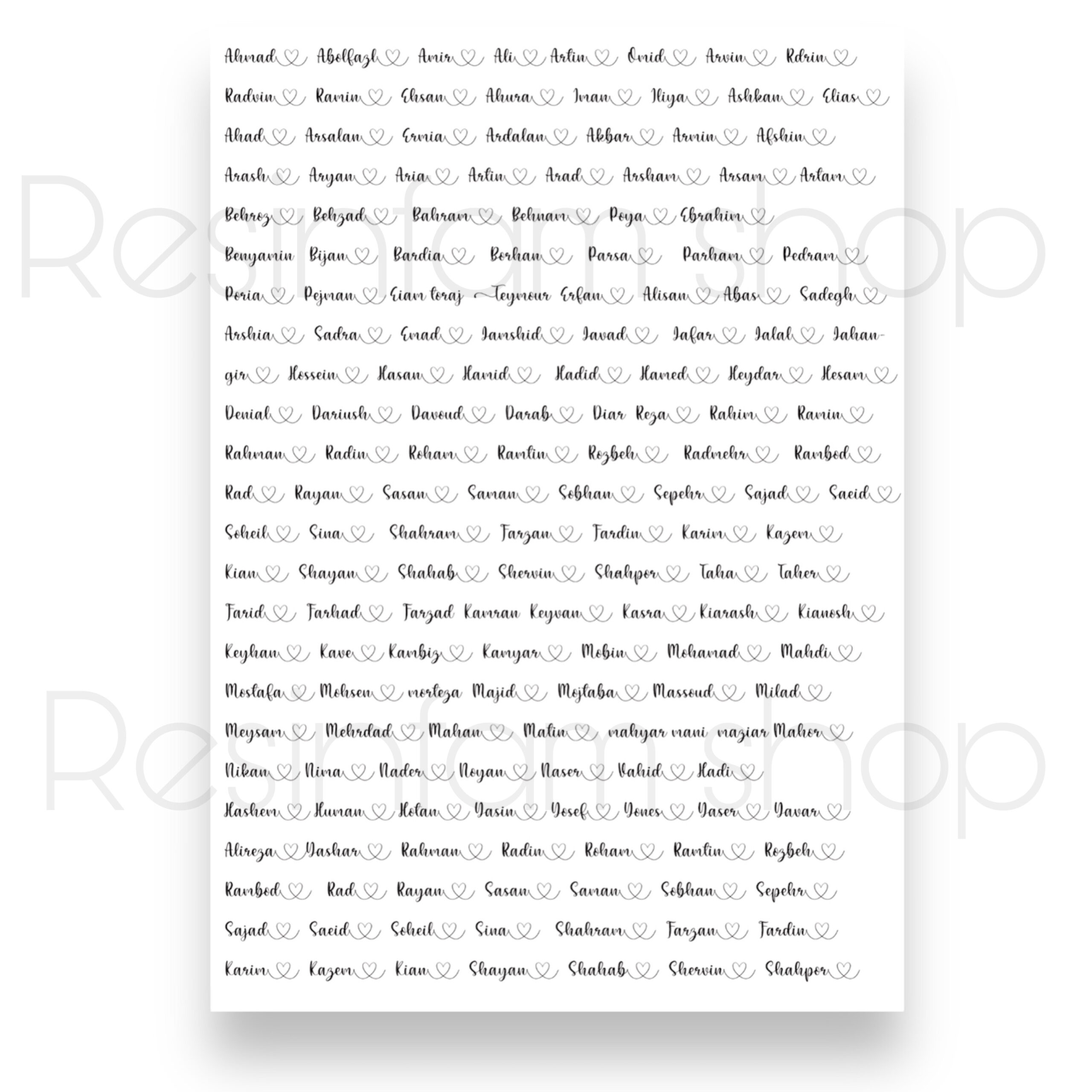 سایز: عرض هر اسم دو نیم تا چهار سانت می باشد و شامل یک برگ A4 می باشد
